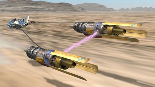 Una de las escenas más espectaculares del Episodio I es precisamente una carrera de vainas en la que participa Anakin con un vehículo construido por él mismo. Un homenaje en toda regla de George Lucas a la carrera de cuadrigas de Ben-Hur. La victoria en esta carrera le dará la libertad a Anakin, esclavo hasta entonces.